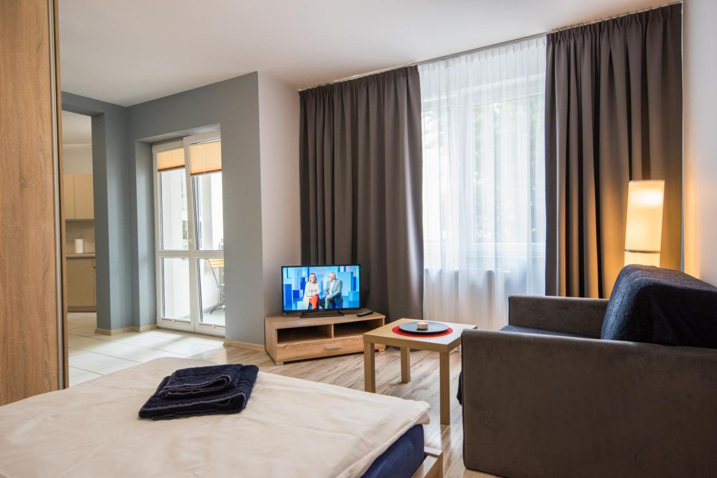 Apartament. This apartment is comprised of 1 bedroom, a kitchen and 1 bathroom with a walk-in shower and a hairdryer. Meals can be prepared in the kitchen, which comes with a stovetop, a refrigerator, a dishwasher and kitchenware. The apartment offers a dining area, a wardrobe, an electric kettle, a tiled floor, as well as a flat-screen TV. The unit offers 1 bed. Apartament - 3 osobowy. Powierzchnia pokoju ok.: 35 mkw.